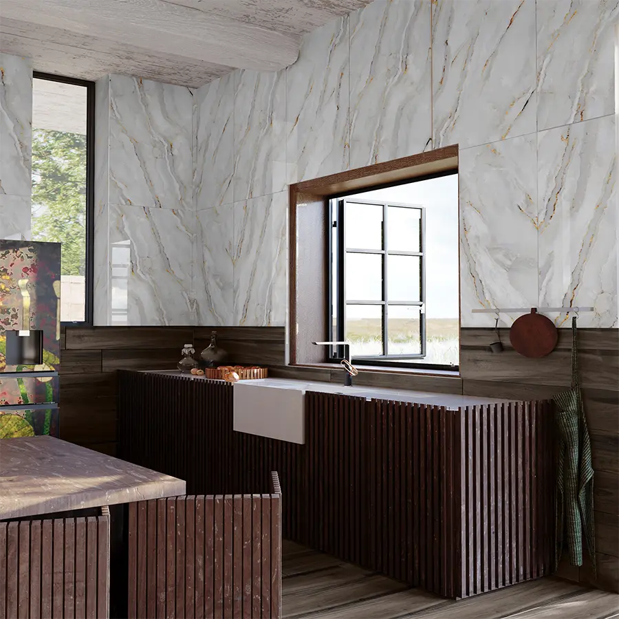 60×120 CLEOPATRA REC-FULL LAP 1, iç mekanlarda duvar kaplaması, zemin kaplaması ve tezgah kaplaması olarak kullanılabilir. Ürün, özellikle salon, mutfak, banyo ve oturma odalarında tercih edilir.