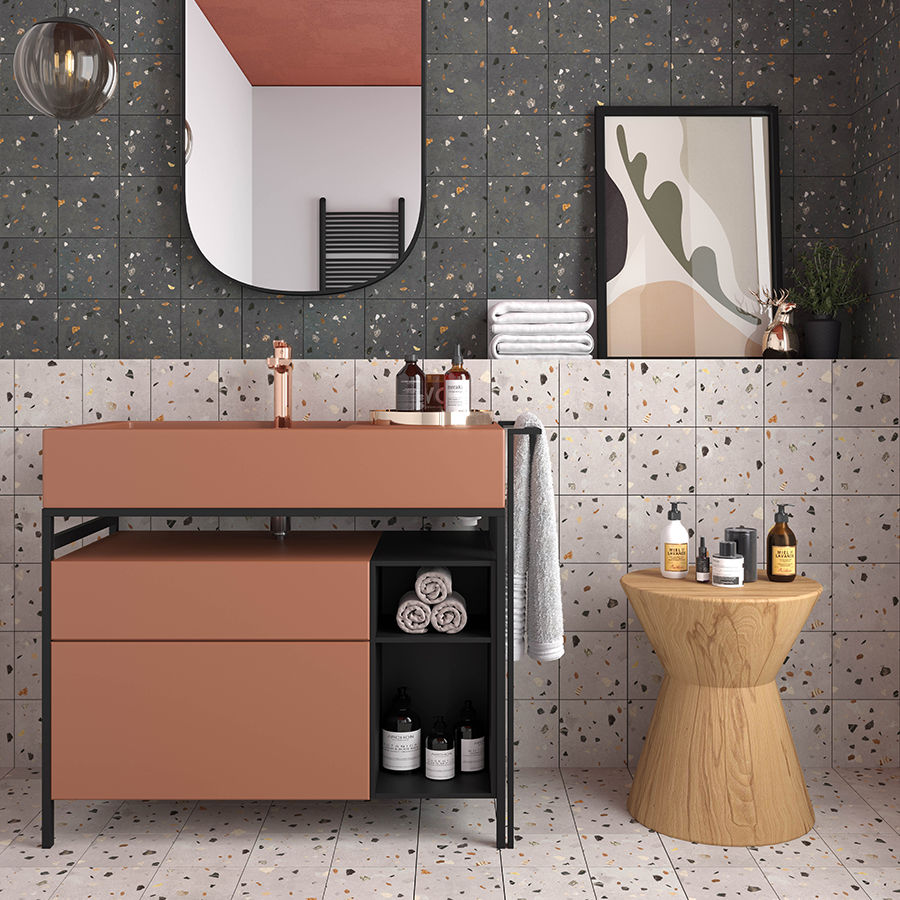 Terrazzo dokusuyla hem klasik hem de modern tarzda döşenmiş mekanlara uyum sağlayarak bulunduğu ortamda ferah ve sofistike bir hava yaratır.